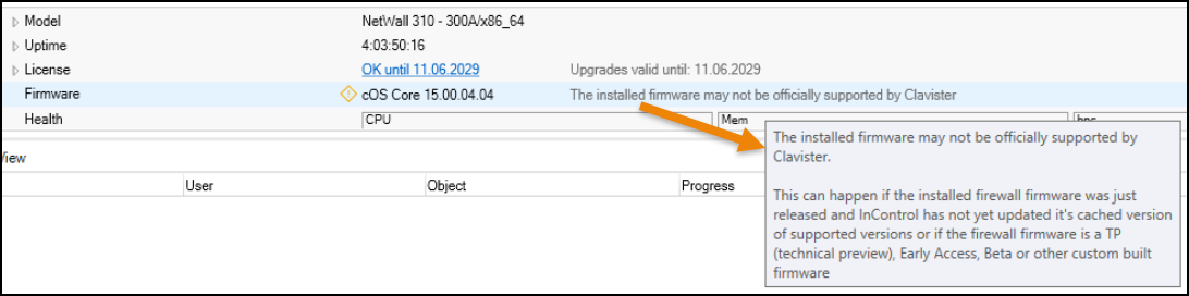 Note: This warning message can only trigger if InControl is linked to a https://my.clavister.com account.